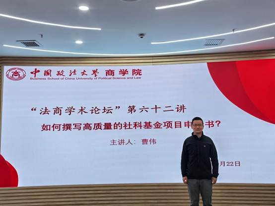 在海淀校区成功举办了“法商学术论坛”第六十二讲。本次论坛特邀西南财经大学中国金融研究院教授、博士生导师曹伟教授担任主讲嘉宾,为师生们带来了一场题为“如何撰写高质量的社科基金项目申请书”的精彩讲座。讲座由国产主播